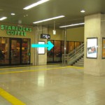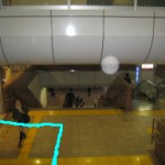 Please follow the arrow. Please go down stairs or escalator for one flight.